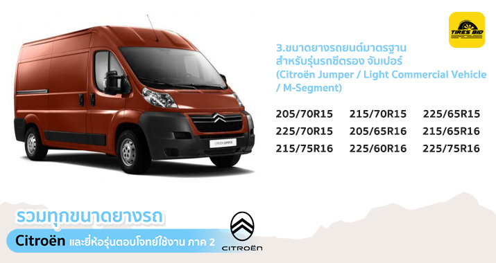 3.ขนาดยางรถยนต์มาตรฐาน สำหรับรุ่นรถ ซีตรอง จัมเปอร์ (Citroën Jumper / Light Commercial Vehicle / M-Segment)